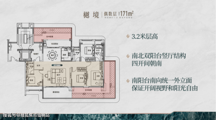 例如第四代大平层3.2米跃级层高,突破了传统层高设计,增加南面进光量,让视野更加无拘无束!