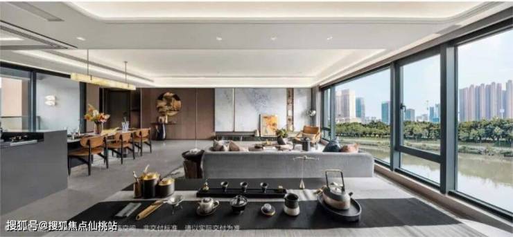 不管是站在客厅还是卧室,都能无死角欣赏江波荡漾的美景,清晨被江风唤醒,傍晚看落日浸染江面,这样的居住氛围在佛山江景盘中相当能打。建筑立面采用钻感鎏金天幕搭配顶部金色徽标,不仅颜值在线,成为城市天际线的一道亮色,大面积玻璃材质也让室内采光更充足,江景视野更通透。