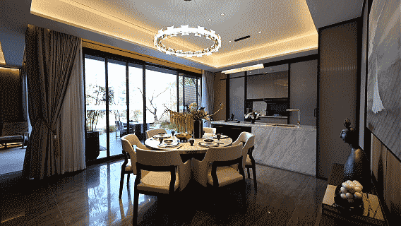 建面约220-265㎡的半山院墅,有天,有地,有院子。宽厅聚客,套内约50㎡餐客厅与建面约60㎡庭院相连。这里是家族欢聚的场域,火锅、烧烤、私宴,是招待朋友、同事、合作伙伴的社交主场。