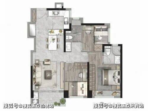 3. 高实用率≈110%同等面积多一房,77㎡三房、99㎡四房非常少见