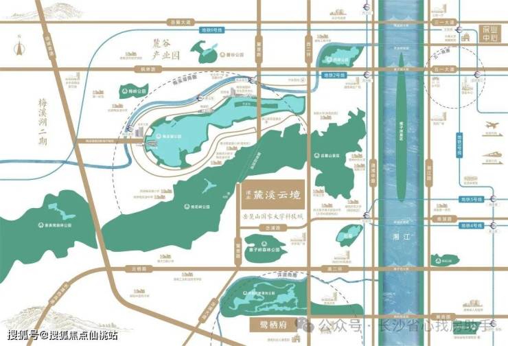 项目背靠梅溪湖坐落于麓山文脉之上,呈三面环山(桃花岭、岳麓山、寨子岭)之势 ,梅溪湖城市公园、桃花岭公园、岳麓山风景区、寨子岭公园、大科城三公园—古人塘公园、桃花溪公园、麓人湖公园(规划中)多公园环绕,打造项目最纯粹的静谧城市山居生活。