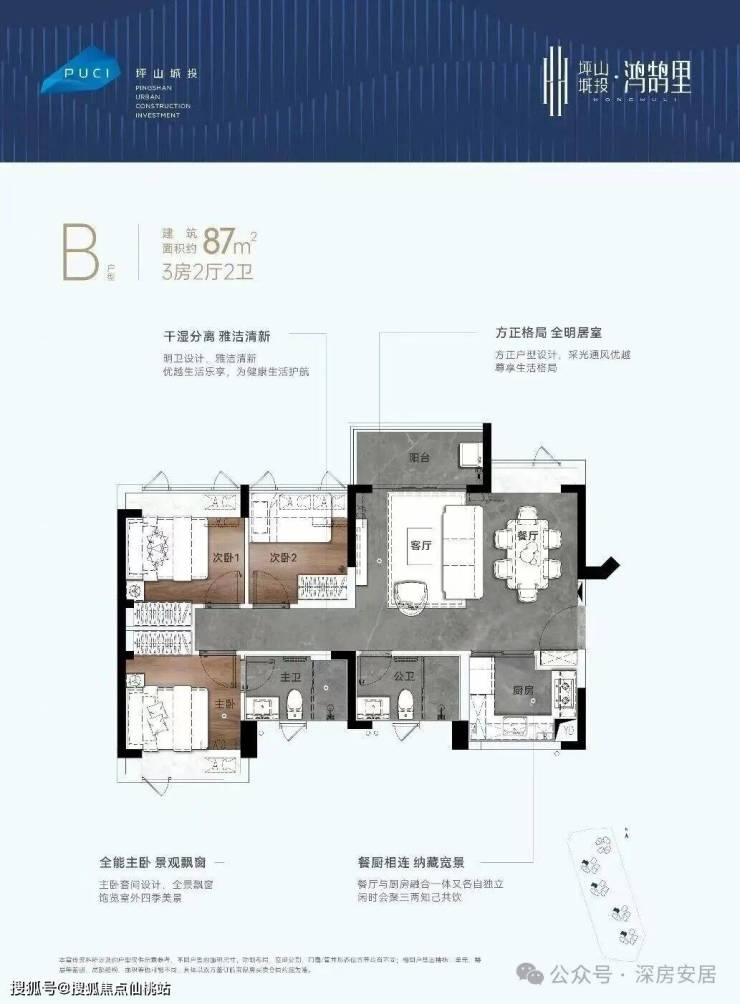87㎡的3房2厅2卫,折后总价约265万起,单价约3.04万/㎡。