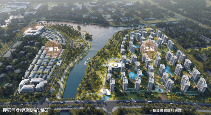 项目坐拥海棠河绿轴核心,亲河近海,双公园环绕,被约11万㎡的水岸生态公园和2.5万㎡林荫景观公园环绕,自带商业与医疗配套,做一体化运营。