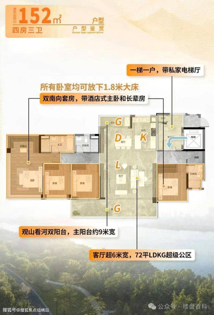 面积户型:72-152㎡(三四房)精装修