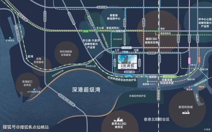 ·双地铁线:7号线双地铁口优势;22号线双地铁上沙交汇站(规划中),1站直达香蜜湖新金融中心与河套深港创新合作区。·超级口岸:皇岗口岸深度改造,深港唯一24小时陆路通关口岸,3城轨+2地铁,迅捷连通深港河套两地。·联港通沪:沪深高速磁悬浮规划,约2.5h通达沪深,链接“上广深港”南中国超级都会群。·城际轨道:全面覆盖广深科技创新走廊的穗莞深城际铁路,贯通大湾区重要科技核芯;深广中轴城际铁路,直连广深城市中心;香港北环支线,再添深港连通新轨道,便利畅达尖沙咀。