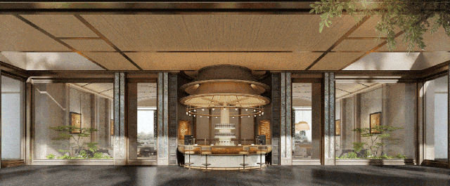 奢艺级建筑美学:外立面创新融合香槟金色铝板与精致金属饰条,搭配全景玻璃幕墙与灵动的鎏金飞檐。将传统东方元素以现代建筑语言重新解构书写,在区域天际线中实现“断层式”的审美领先。