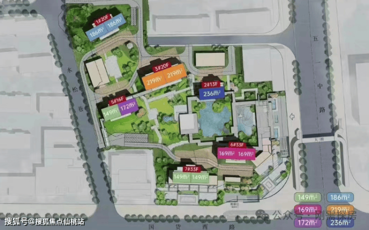 项目占地33亩,规划6栋13-33F高层住宅,合计约246套,主打建面:149-236平米。