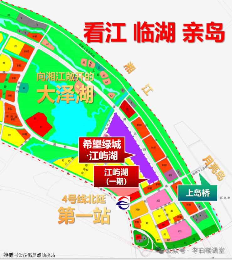 放大大泽湖片区规划——大泽湖之南岸,湘江沿线,既看江、又临湖,这是打造看江、临湖楼盘。