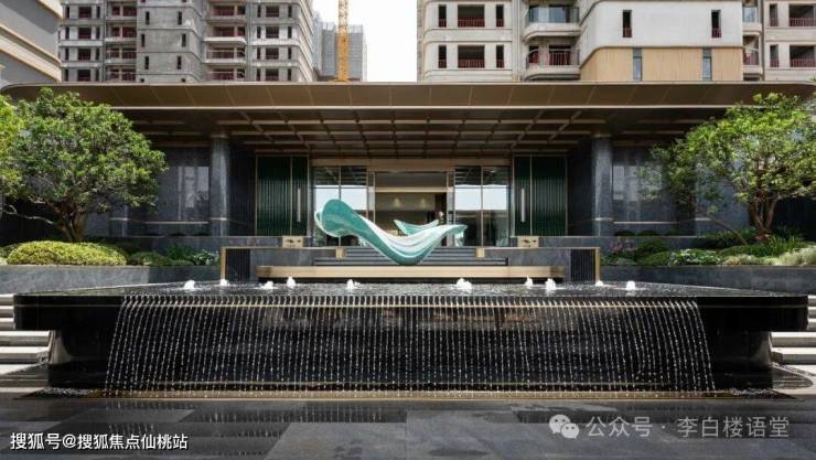 全维示范区已经实景呈现,颜值和品质惊艳。比如外立面,片区首个圆弧形转角+香槟色立面,颜值超高。比如大门,黑金奢石+拉丝面香槟金线条+金属遮檐,搭配外部假山景观树、内部水景雕塑,大气。