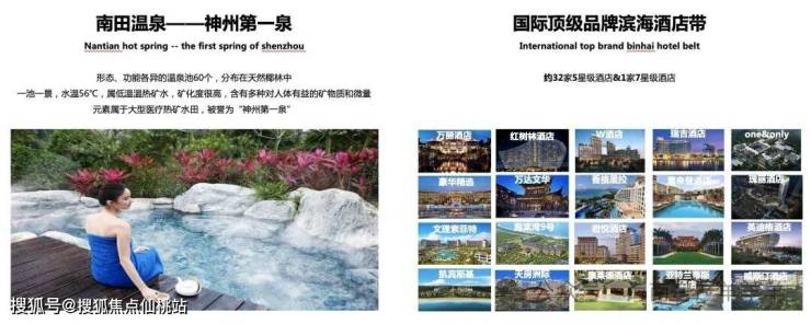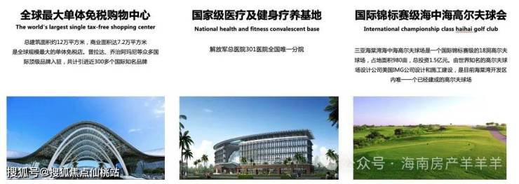 中国人民解放军总医院(301医院)、中国人民大学附属中学(人大附中)、海南国际免税城、 HELLO KITTY 主题乐园、海昌梦幻不夜城、乐高主题公园、亚特兰蒂斯水世界、海棠68(Arena)商业街、水稻国家公园、海中海高尔夫、36洞神泉国际高尔夫、IMAX影城、银行、超市、生活商圈配套。