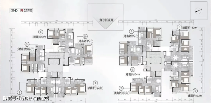 项目采用“新中式合院”设计,还进行了30度楼体扭转,以此实现更宽敞的楼间距,更开阔的景观视野,更好的通风和采光。