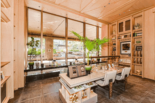 光影流转的祥纹吊灯、烫金工艺的游园主题画作、若隐若现的祥云纹玻璃屏风,每一寸空间,都旨在让人放松身心。