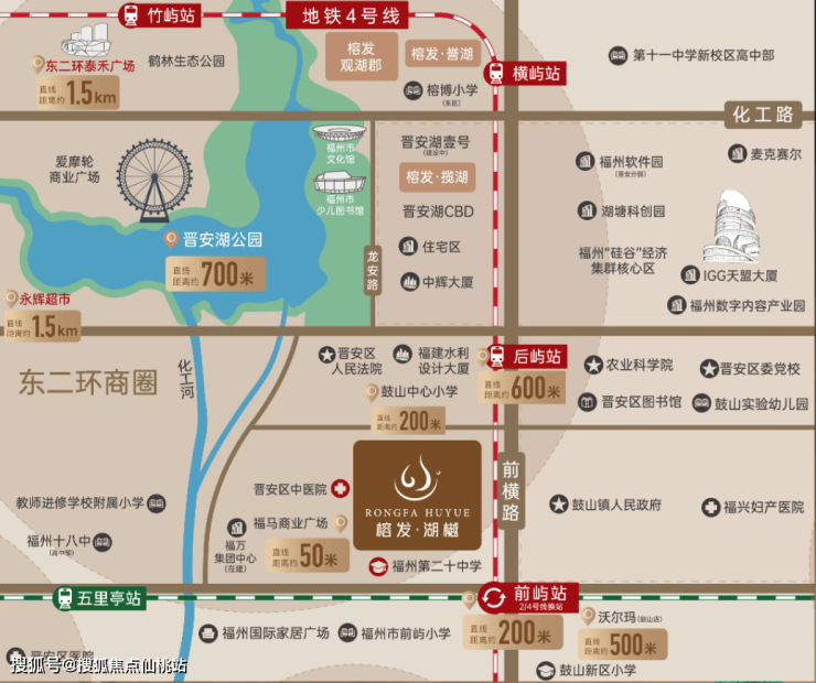 1 距离晋安湖的直线距离只有约700米。