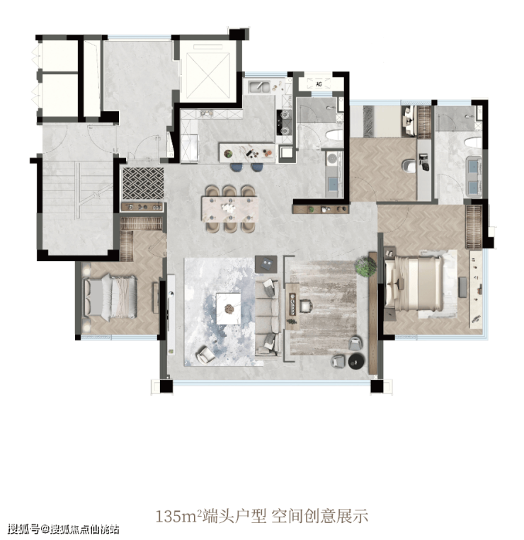 135㎡户型,瞄准的是市面上160平的大平层。