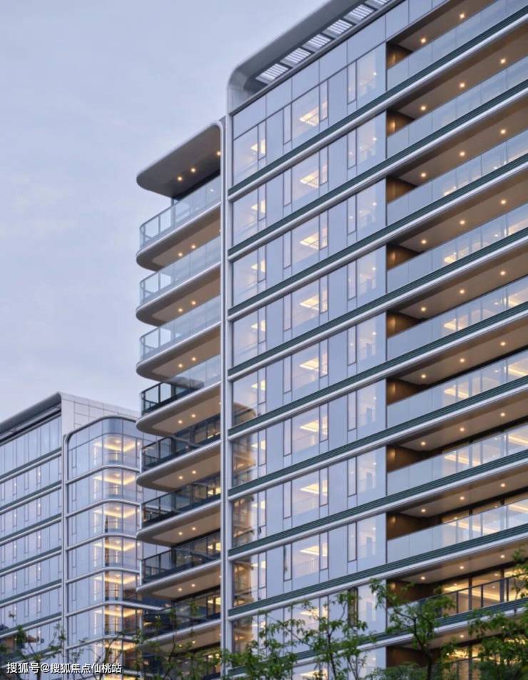 哪怕只是远远地看一眼,你都无法忽略它的美。为什么美得那么出众?你看圆润的弧形转角,带来了灵动的曲面屏建筑。你再看镶嵌在外立面上的绿色陶板,它们变成了纤细而优雅的线条,仿佛是抒写在钱塘江畔的诗行。绿城还精确控制了玻璃的色泽——再白一度,就过于轻浮;再黑一度,就过于突兀;最难的,就是像现在这样的「恰到好处」。