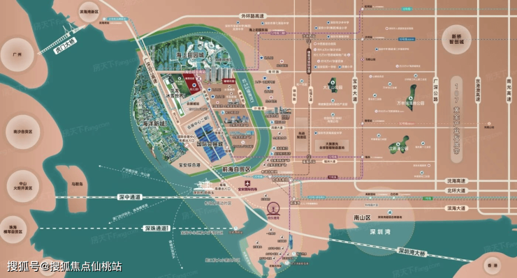 招商雍境项目距离地铁12号线海上田园南站仅约100米,步行即可到达。地铁12号线可无缝换乘11号线、20号线等,快速通达南山中心、福田中心、宝安中心等核心区域,通勤效率高。周边有广深沿江高速、宝安大道等主干道,自驾前往深圳湾、前海等地便捷,深中通道开通后,到中山、东莞的通勤时间进一步缩短。