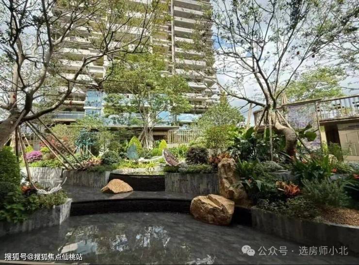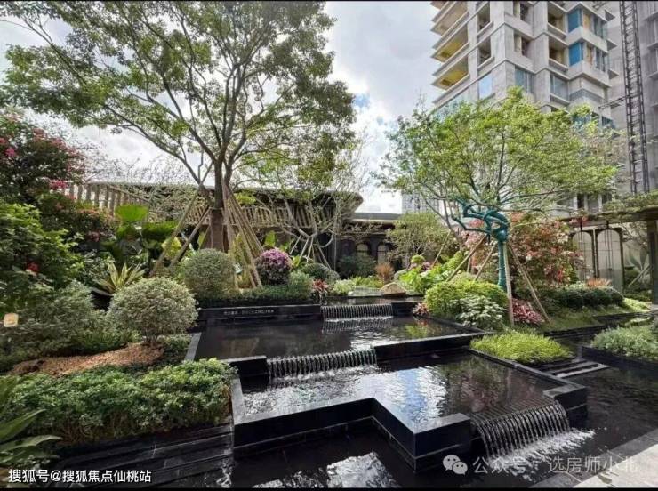 流花水院借鉴东京虹夕诺雅酒店的园林风格,打造叠水式瀑布景观,营造五星级酒店归家体验。造型朴树,精品紫花风铃木、黄皮、鸡蛋花、玉芙蓉、造型勒杜鹃、米兰、鼠尾草、玉簪、月季等,丛叶香到花香再到果香,沉浸馥郁芬芳。