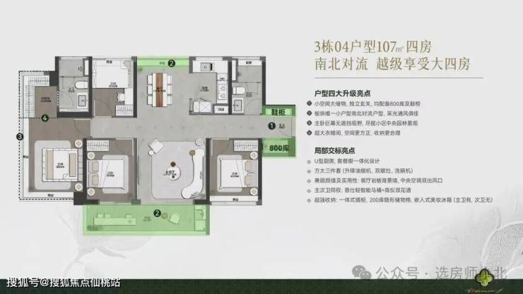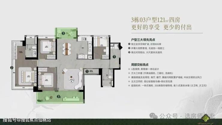 目前项目货量比较多选择的就是3号楼了,这一栋户型有107-121平。