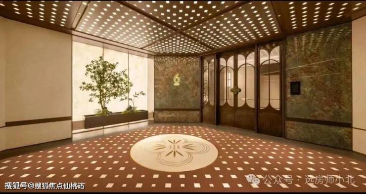 项目交标也比较高,一进门是铸铝大门,因为经过高超工艺处理,铸铝大门长时间使用依然光亮如新,展现出高质感和耐用性,玄关地面拼花设计,每一寸纹路既是色彩的私语,也折射出你生活中的光影。