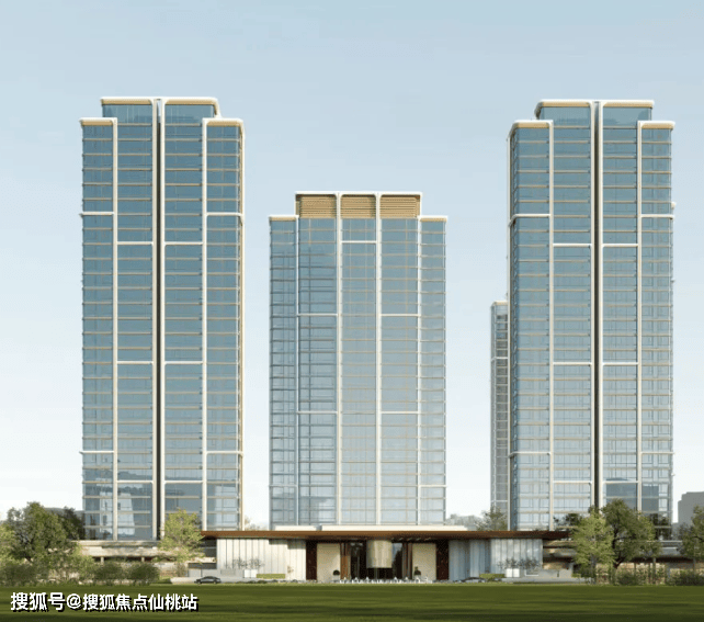 项目的外观颜值也是非常能打,整体采用“无漆房”,外立面统一“玻璃幕墙+铝板”,部分楼栋塔冠采用金属饰条,非常具有辨识度。