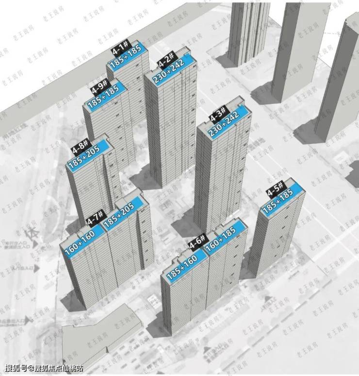 4期与3期的布局很像,8栋住宅+1所幼儿园,与一期一样有两栋超高层,所以需要注意一下超高层对后面楼栋的日照遮挡关系。
