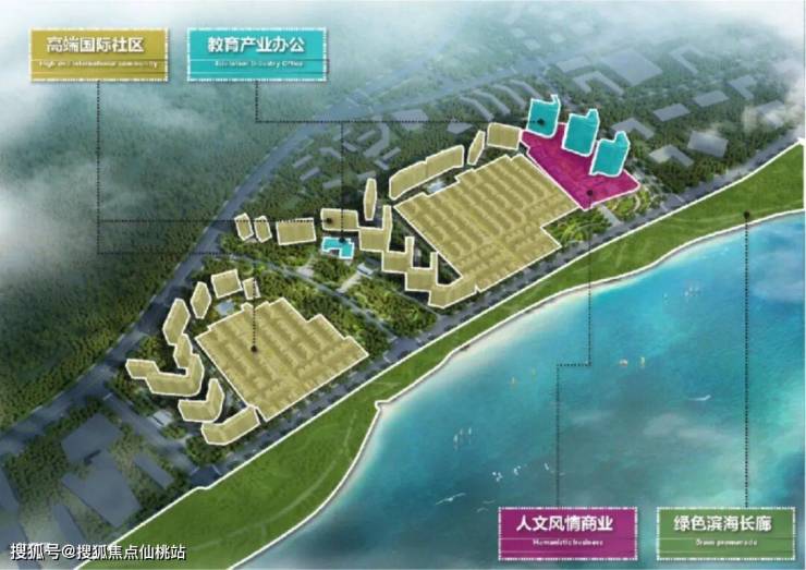 匠心规划高端国际社区、人文风情商业、绿色滨海长廊、教育产业办公等多元功能板块,打造包含约2.5万方全维生活商业、全龄业主乐活休闲空间、社区学堂、热带滨海风情园林等四大主题度假配套,呵护旅居生活的每一面。