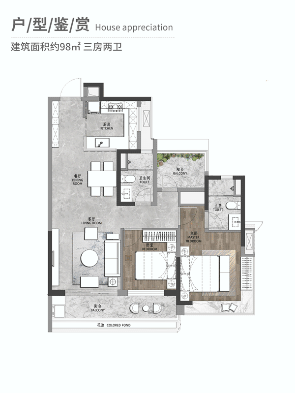 中海保利朗阅主推的建面约98-182平的全南向三至四房,整体还是可圈可点的,户型使用率在95%以上,几乎是广钢新城,使用率最高的户型。