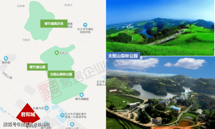 地铁中建君和城所处板块为青竹湖板块,板块拥有8000亩太阳山森林公园、350亩青竹湖、国际18洞标准的顶级山地高尔夫球场。是长沙目前唯一服务外包示范园区,依托智慧低碳型产业结合极优越的自然环境,将打造成湖南最佳居住环境”的现代新城。