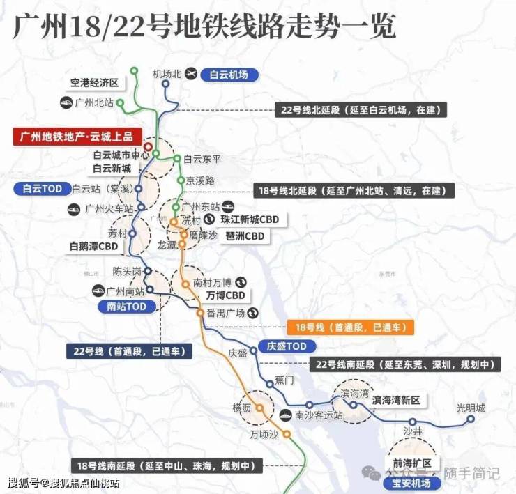 广州地铁18号线-对外链接大湾区西部,对内链接广州CBD区域,3站广州东站、4站珠江新城、5站琶洲、通达万博、南沙等核心区。