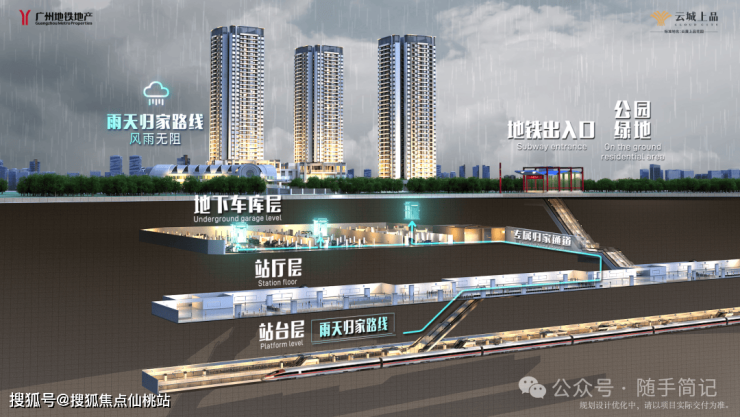 与其他TOD项目最大的区别在于:广州地铁地产·云城上品规划了市面上地铁盘所少有的专属归家通道,与地铁站厅无缝衔接;业主通过专属通道抵达地铁站,享受无日晒无风雨出行体验。