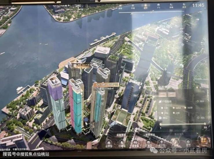 共5栋楼,总高56-58层,首推1/5栋,1栋57层,43层以下是两套176方的,45-57层是一套248方的,5栋是塔楼,一户139,两户165,超新规产品,得房率据说有130%。