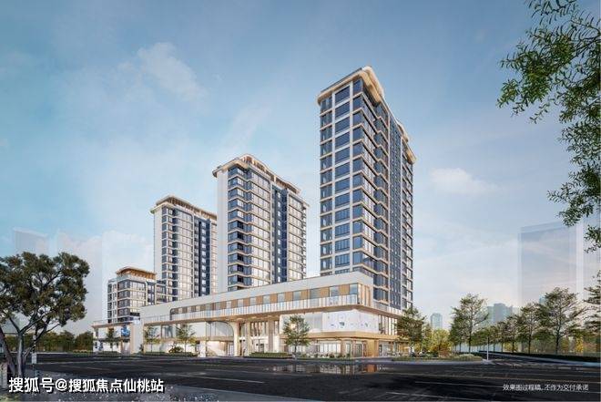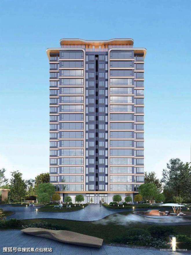 尊崇的归家体验与美学立面:景观设计打造“星级酒店入口-宸辉水院会客厅-花素缦庭”三重归家礼序,营造酒店式尊贵体验。建筑立面采用典雅的海派风格,以高级灰、香槟金为主色调,搭配大面积玻璃幕墙和蓝灰色金属线条,顶部的“鎏金王冠”造型更成为标志性符号,极具辨识度与品质感。