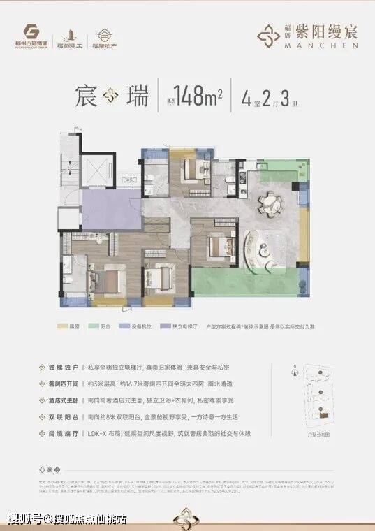 低密规划与纯粹圈层:仅2.4的容积率和3栋建筑的规划,在二环内堪称奢侈。仅97席的规模确保了社区的私密性与纯粹性,瞄准了福州塔尖的改善家庭。