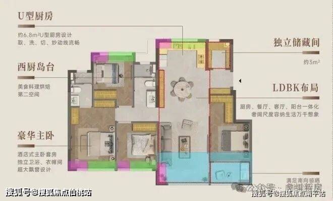 首先是入户下移,不再影响餐厅,餐厅也有了完全独立的空间,客餐厅做到完全的南北通透,次卧有了一个独立卫生间,虽然是暗卫。