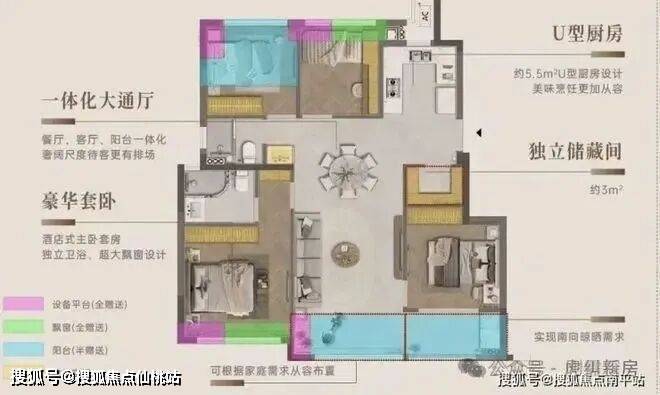 从户型数据来看,公摊16%,赠送14平,得房率97%。