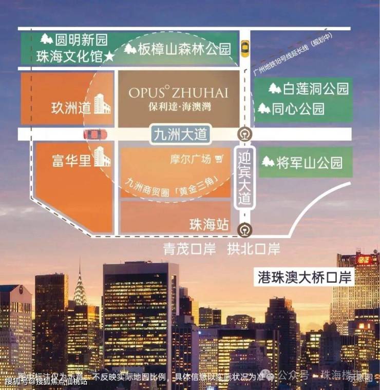 项目地处九洲大道与迎宾大道交汇处,珠海市中心城市黄金双中轴;