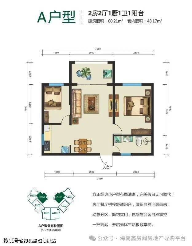 :主力户型:53.47平一房一厅、60.22平二房二厅,73.06、77.98平二房二厅