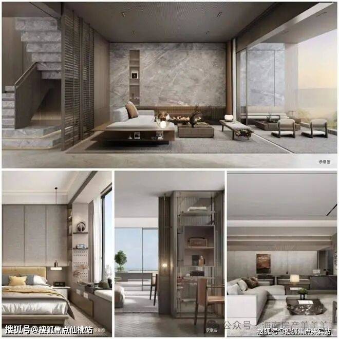 建筑与自然融为一体,面镶嵌更具暖意的山林色系。约0.3容积率,低密上筑,花园般生活意境。