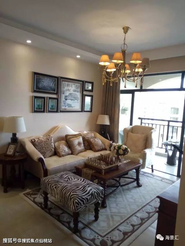 客厅宽敞明亮,坐在露台的躺椅上,面朝郁葱庭院,清新空气扑面而来