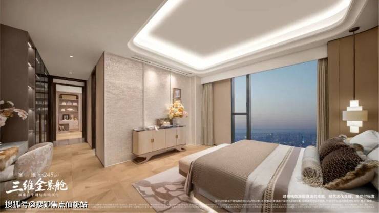 天樾云颂二期的三维全景舱设计,不仅对标全球鼎豪标准,更依托钢结构的优势,结合本土居住需求进行优化,实现了“视野、采光、通风”的三维进阶。这一设计理念,在建面约245㎡的户型中得到了入木三分的演绎。