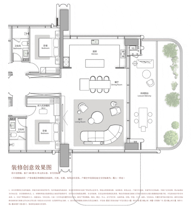 市面上深得人心的是“LDKB”,天樾云颂二期在“LDKB”基础上,创新落地了LDKB+G的超级聚厅设计,即客厅+餐厅+厨房+空中花园+户外花园一体化融合,形成总面积约120㎡的“家庭活动核心区”,一进门就能感受到强大的气场,彰显主人的气度与格局,目之所及,开阔、敞亮。