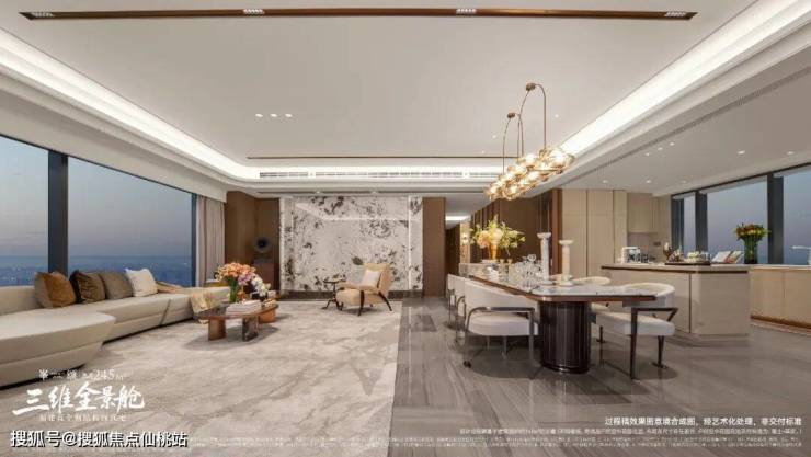 传统豪宅的景观面,无论多宽,本质上仍是在墙上开设“取景框”,视野是定向的、有边界的。而三维全景舱通过物理边界的消融,实现了 “场景包裹” 。