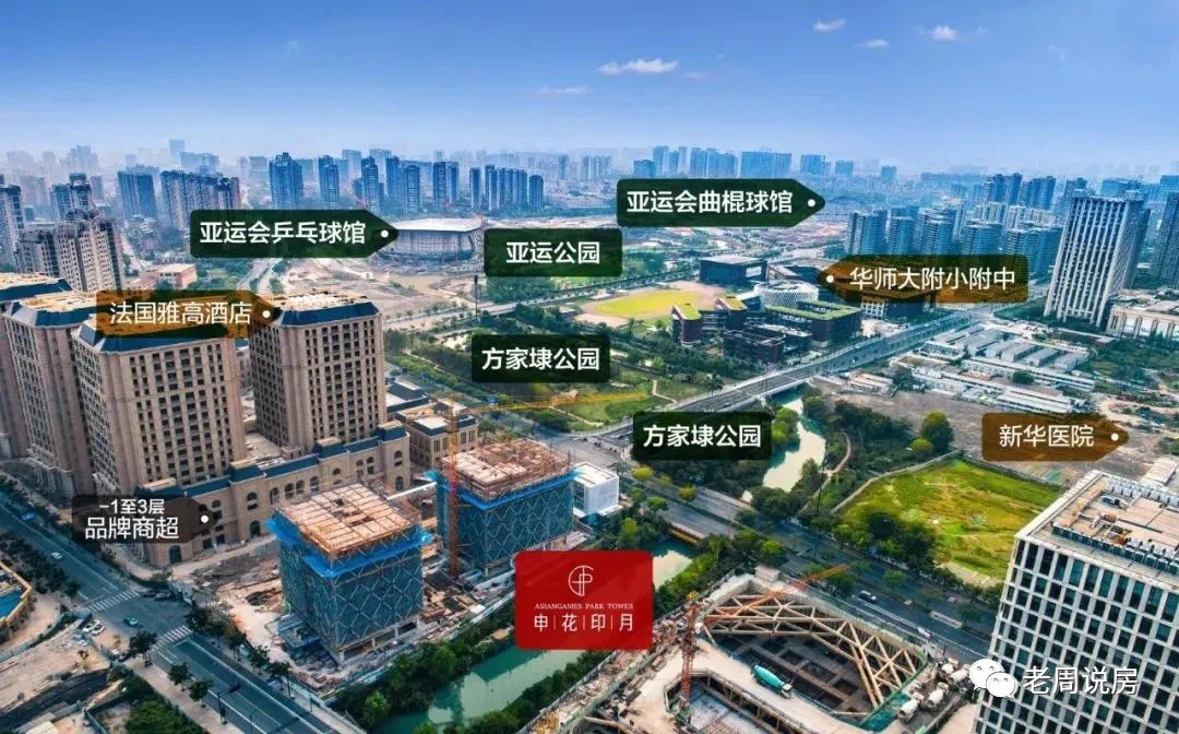 申花板块较大潜力点是亚运,2022年亚运会分会场就在这里。项目西北角就是701亩亚运公园,曲棍球及乒乓球两大主场馆就在这里。亚运概念加持,这个板块最近几年房价持续上升。