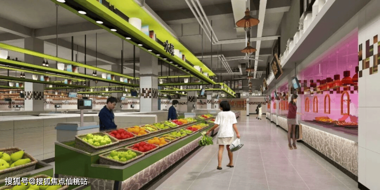 距离东北市场步行5分钟,里面有蔬菜、水果、海鲜、肉类、餐饮、超市等为一体的大型综合体。