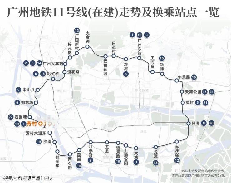 步行约800米可到1号线芳村站,四线合一超级枢纽(包含1号线已开通,11号线已开通,22号线建设中,28号线规划中),轻松链接全城,未来0换乘直达广州站、广州南站、白云机场等重要交通枢纽。