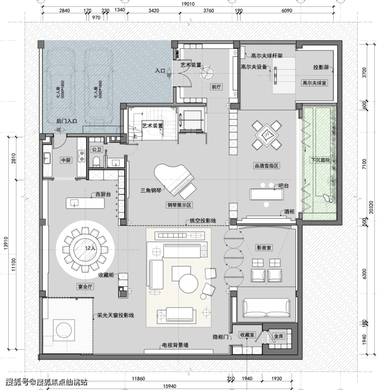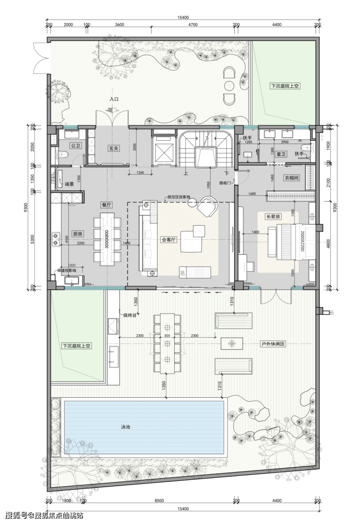 负一层下沉庭院周边设工人房、家政间,储物无忧;