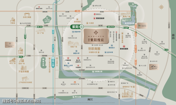 福州城市中轴腹地,晋安、鼓楼、台江三区交汇处,政治、文化与金融的辐射核心圈,古田路“东西轴”价值金线上。