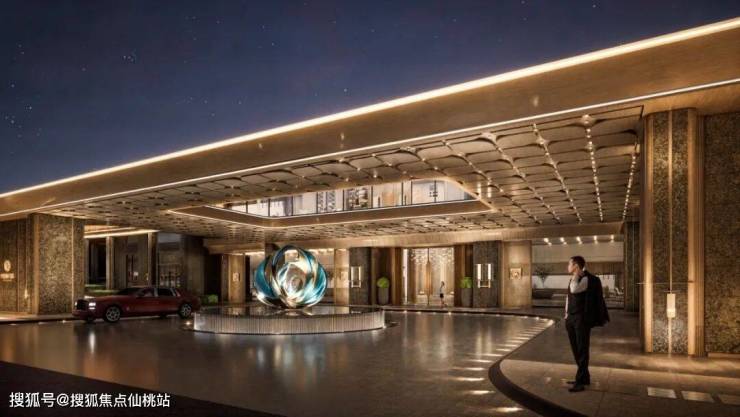 双入户大堂承启尊荣:约270m市政绿轴串联环岛式落客,自然式酒店度假体验。