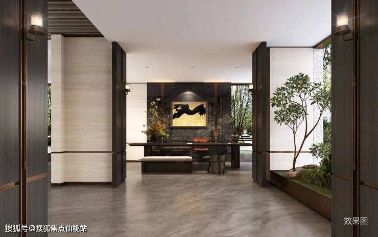 三重臻装入户门楼:地下门厅、首层门厅、私人电梯厅,一进一礼,敬呈归家至高礼序。
