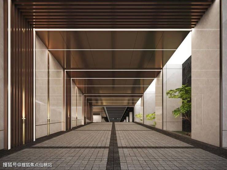 奢装艺术车库:地下车库采用金属格栅+彩石地坪,节点处设绿植,打造诗意归家之路。